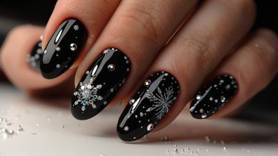 Schneeflocken sind das Symbol des Winters und funktionieren als Nageldesign auf Anhieb. Besonders gut wirken sie auf dunklen Farben wie Navy, Schwarz oder Bordeaux, weil sich der Kontrast stark abhebt. Eine einzige Schneeflocke als Akzentnagel macht das Design stilvoll und nicht überladen. Wer es glitzernder mag, ergänzt silberne Punkte oder feinen Schimmer, der an Eiskristalle erinnert. Ideal für festliche Anlässe und problemlos im Alltag tragbar.